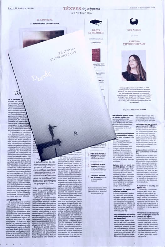 Στη χθεσινή Η Καθημερινή, η Κατερίνα Σπυροπούλου «αποκαλύπτεται» στην Αλεξάνδρα Σκαράκη, με αφορμή την έκδοση της νέας της ποιητικής συλλογής: