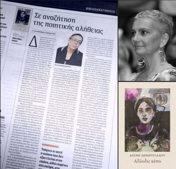 Έξοχη παρουσίαση στην Η Εφημερίδα των Συντακτών (έκδοση Σαββατοκύριακου) και στο περιοδικό «Νησίδες», από τη συγγραφέα και μεταφράστρια Κατερίνα Λιατζούρα, για την εξαιρετική ποιητική συλλογή: