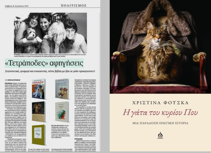 φιλοξενούνται στις «Τετράποδες αφηγήσεις» του σημερινού φύλλου της εφημερίδας Καθημερινή, στις 16/8/2025!